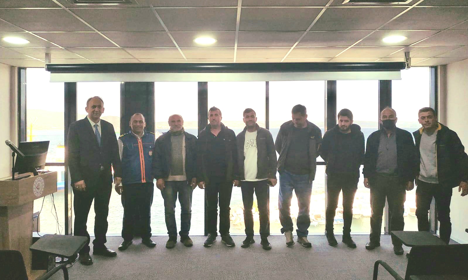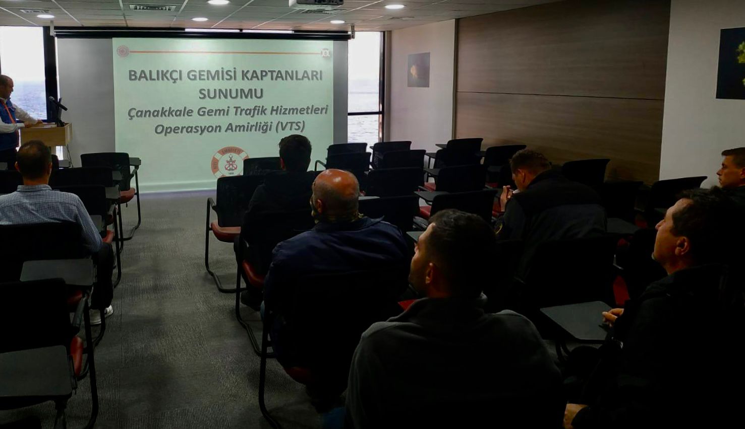 Çanakkale Bölge Liman Başkanlığı’nca düzenlenen Çanakkale Gemi Trafik Hizmetleri Merkezimizi DTO Kaptanlarımız tarafından “GTH uygulama talimatı, Yerel Deniz Trafik Rehberi, GTH ve diğer gemiler ile VHF haberleşmesi ve Denizde Çatışmayı Önleme Tüzüğü” kapsamlı bilgilendirme eğitimi balıkçı gemisi kaptanlarına verildi.Çanakkale Bölge Liman Başkanımız Sn. Cüneyt Aydemir de katılım sağlamıştır.