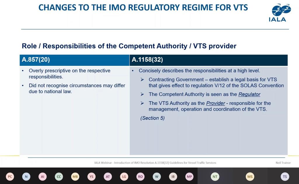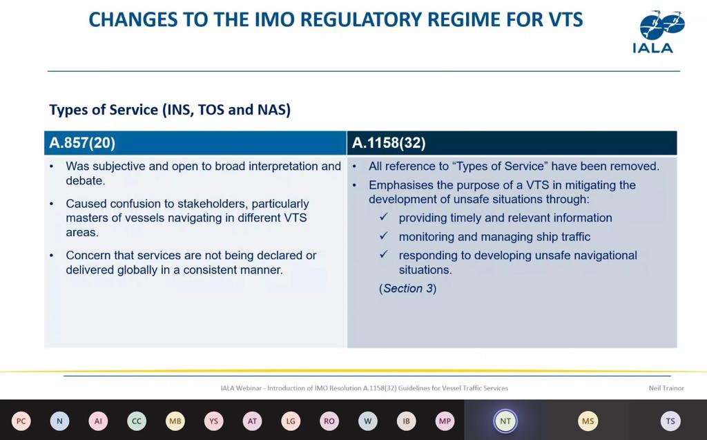 IMO MSC 102 toplantısında, kabul edilen VTS’ler için rehber ile ilgili bilgilendirme yapılmıştır. 1997 yılında yayınlanmış olan A.857(20), yeni düzenlemeyle A.1158(32) olarak yayınlanacaktır.