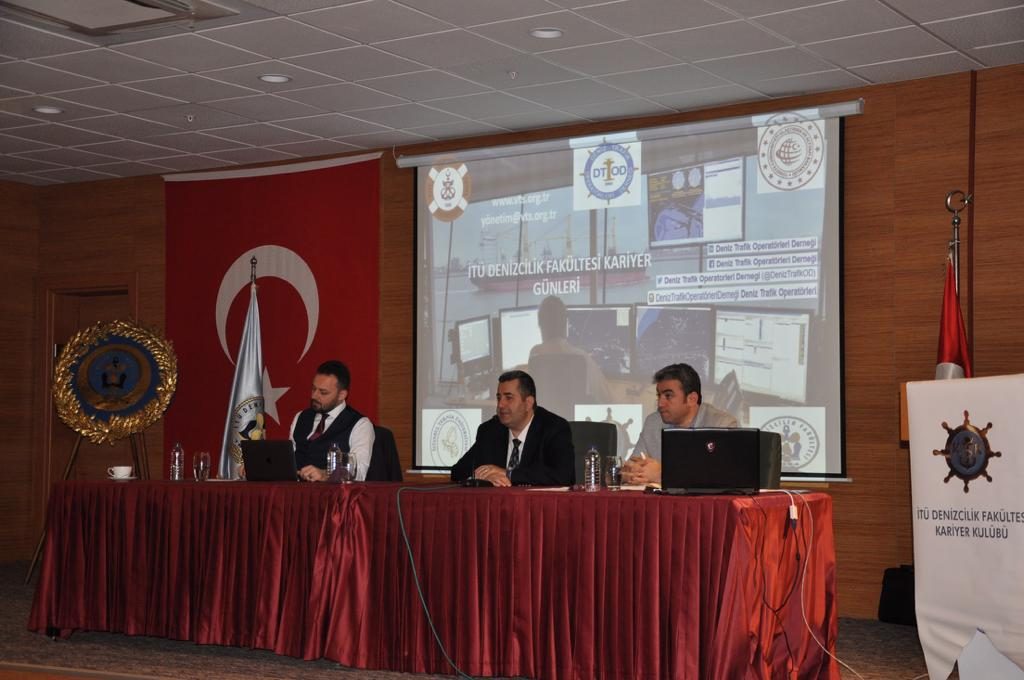 İTÜ Denizcilik Fakültesi Kariyer Kulübü tarafından düzenlenen Sektör Günleri’nin ikinci gün konuğu Deniz Trafik Operatörleri Derneği Yönetim Kurulu Başkanı – DT Baş Operatörü Kaptan Uğur Karabay, DTO Kaptan Deniz Tokdemir ve DTO Kaptan Selahattin Alan oldu.