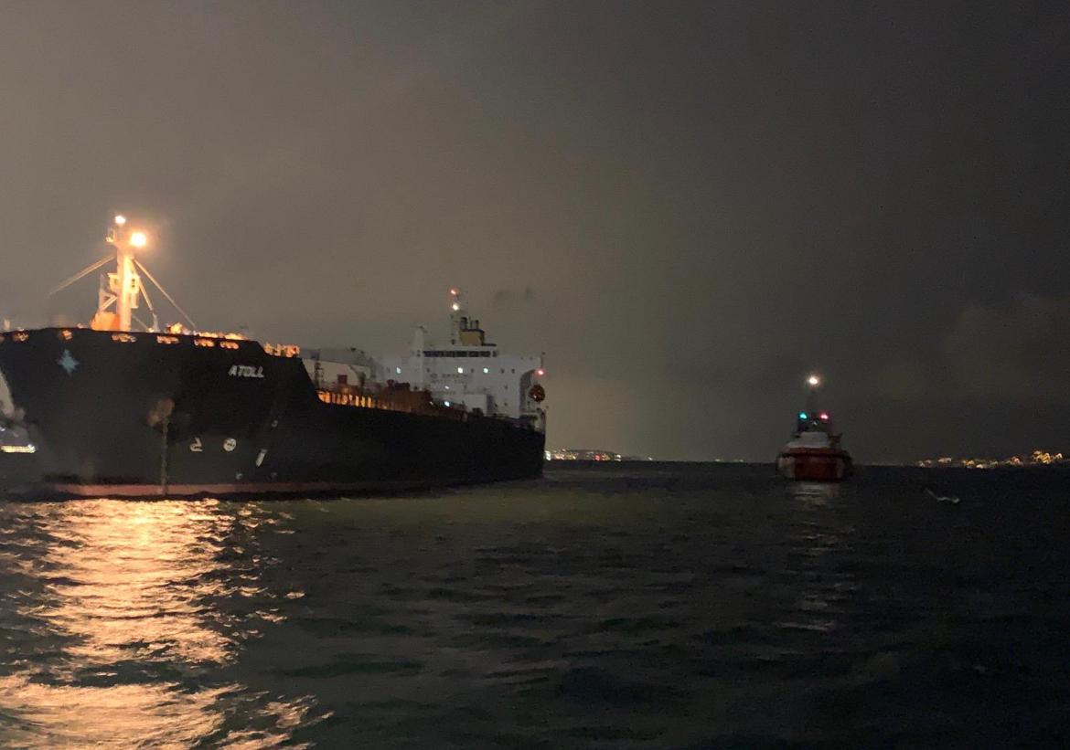 İstanbul Boğazı Güney yönlü seyir halindeyken ‘dümen arızası’ nedeniyle 15 Temmuz Şehitler Köprüsü altında sürüklenmeye başlayan 183 m. boyunda ATOLL isimli tankere İstanbul Gemi Trafik Hizmetleri Merkezi (VTS) koordinasyonunda zamanında müdahale edilerek, Kılavuz Kaptanımız ve Kurtarma Römorkörlerimiz eşliğinde Ahırkapı demir yerine emniyetle demirletildi.