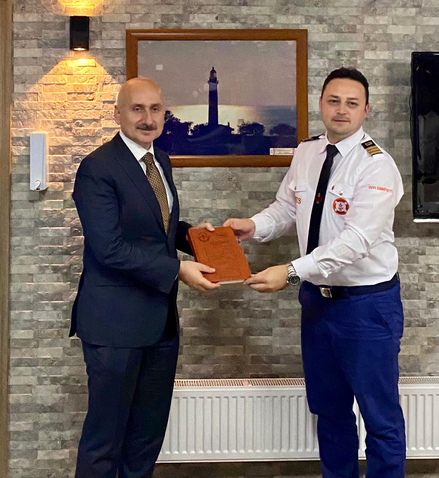 Ulaştırma ve Altyapı Bakanımız Sn. Adil Karaismailoğlu’nun katılımıyla KEGM Yerleşkesinde yapılan toplantıda Türk Boğazları’nda ve Mavi Vatan’da seyir emniyeti üzerine konuşuldu. Kendisine Derneğimizin Denizcilik Ajandası ve takvimlerimiz takdim edildi.